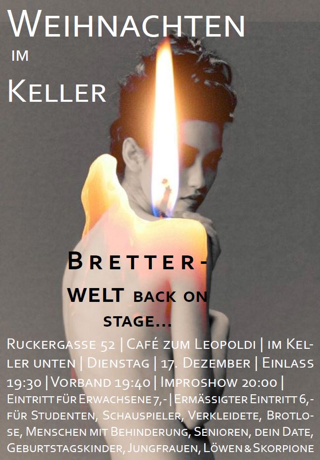 Die staubfunkelnde Welt der Bühnenböden Wiens entführt uns dieses mal in den 12ten Bezirk Wiens. Macht mit uns eine Reise! Welche Geister der letzten Weihnacht werden uns im finstern Keller des Café Leopoldi begegnen? Katzi-Moderator Florian Freilos von unserer letzten Show wird jedenfalls mit von der Partie sein.